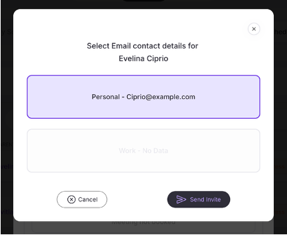 - Another pop-up tab will open. Click on the email address so the box is highlighted and click ‘Send Invite.’