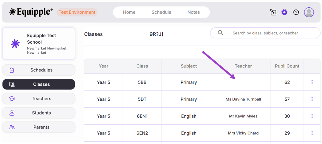 - As you can see below, the Teacher associated with that specific class has now been removed.