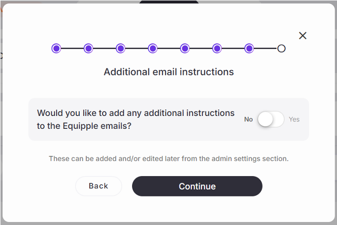 • If you selected ‘yes’ for adding additional instructions to the Equipple email parents receive, then the pop-up tab should change to what you can see below.