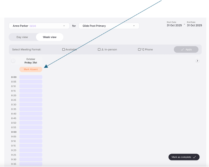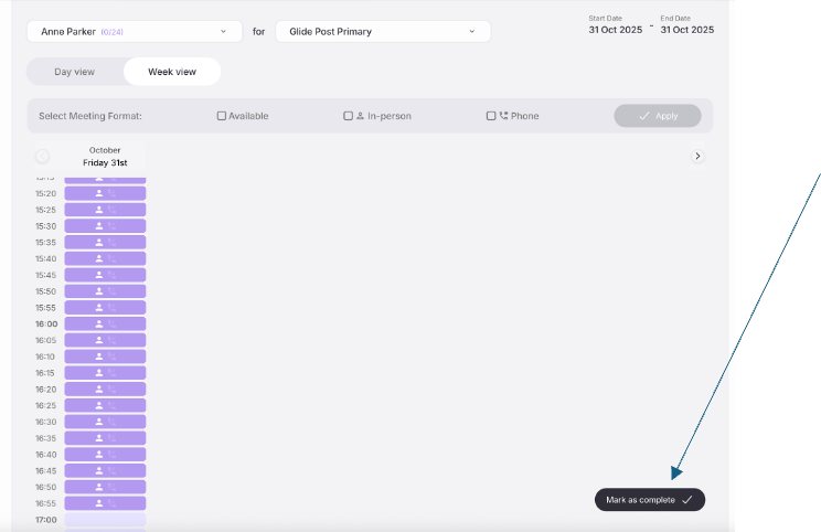 or if they will not be attending that meeting schedule then you can remove them from the schedule altogether which means that they will not be able to be booked by any parent.