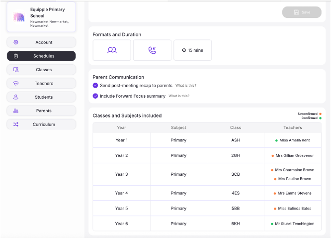 Top tip: as an admin you can see which staff have and haven't confirmed their availability in the 'schedules' section of the admin screen. Those teachers who have confirmed their availability will have a green button beside their name and those that haven't will have an orange button.