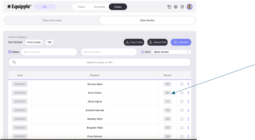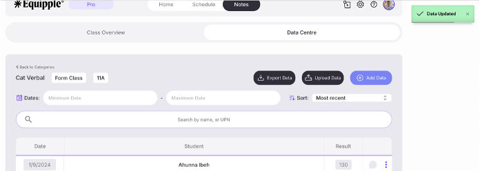 Equipple will then automatically save the changes. When you refresh the screen that data will be amended for that pupil.