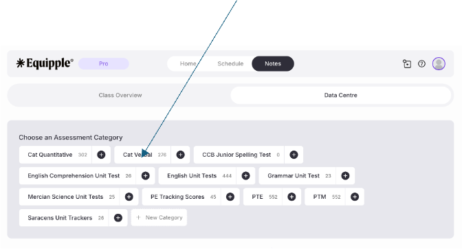 Remember to click on the tab not the '+' icon as this shortcut will take you straight to a way to upload assessment data quickly rather than amend it.