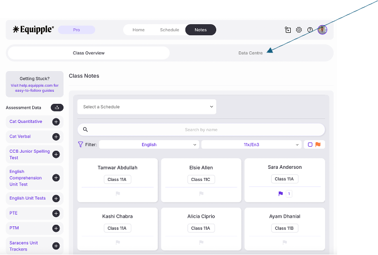 1- Click on the 'Data Centre' when you are in the Notes tab.