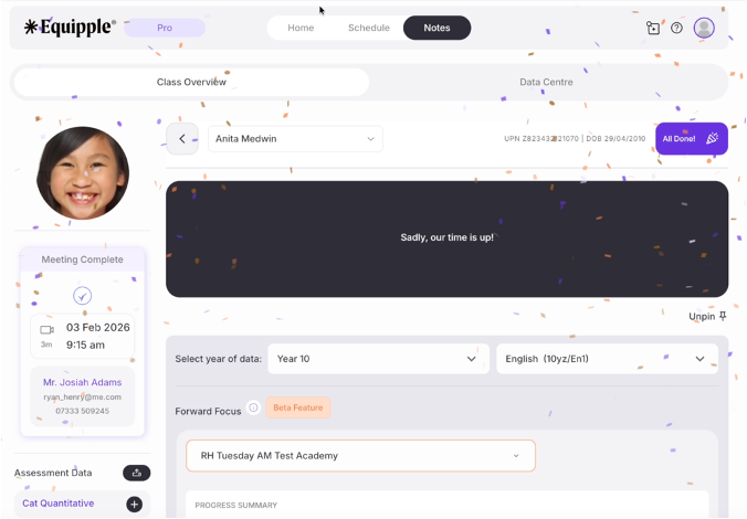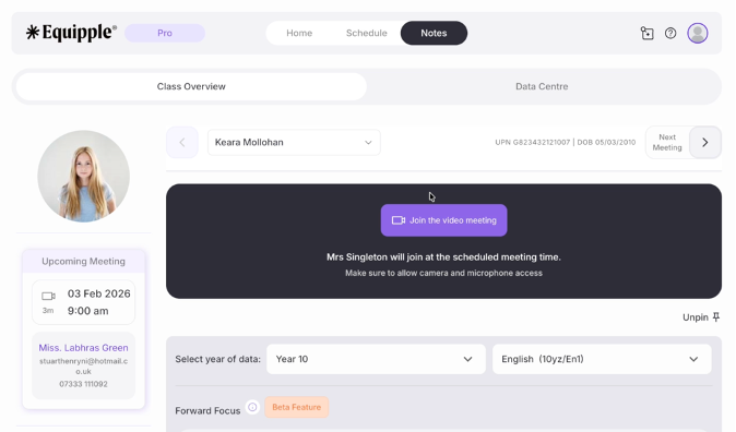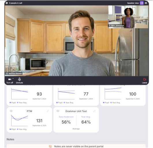 - You will be able to scroll down freely during the call so that you can see any of the pupil assessment data that you may need.