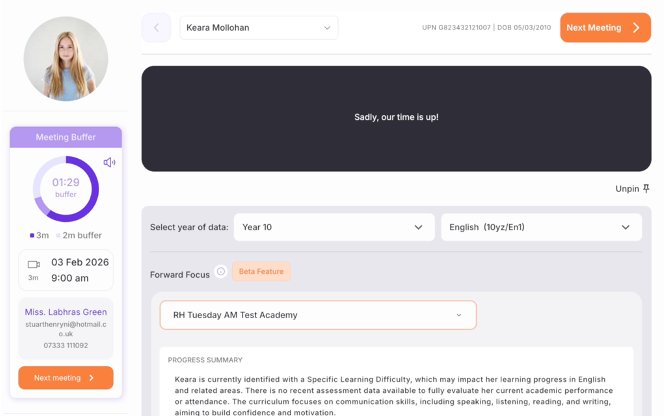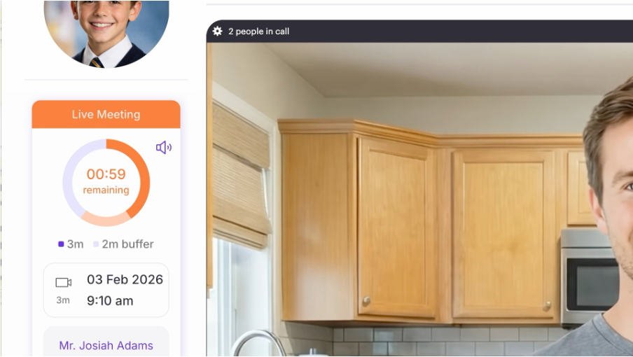 Nb. Both you and the parent will have access to the video room 2 minutes before each call but the video will automatically close once the meeting has finished.