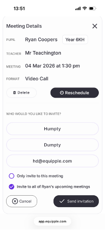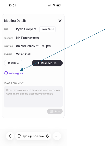 Nb. You can invite a maximum of 1 additional parent per meeting