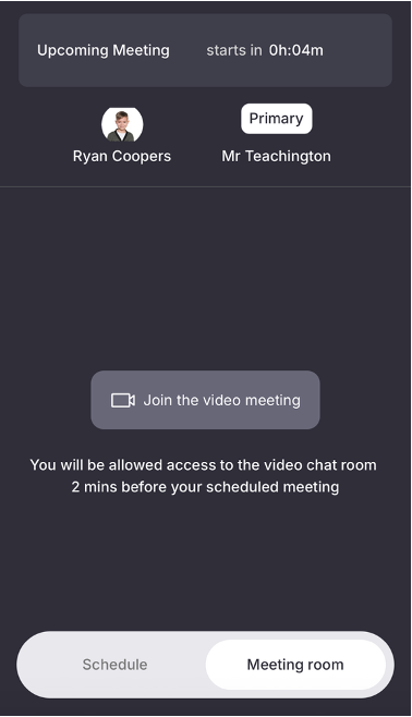 - In the email you simply follow the 'Get Started' link which will give you access to the meeting room where the video meetings will take place. (You can also obtain a link to the meeting room from your original confirmation email when you booked the meeting. Once the schedule has been locked then parents have access to the video meeting room.)
