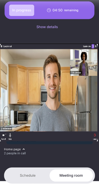 - Once the meeting has finished the video meeting will end automatically and you simply click ‘next meeting’ which will take you to your next appointment.