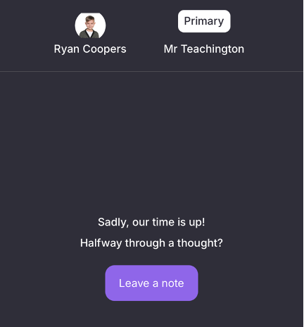 Nb. If you run out of time you always have the option to leave the teacher a message at the end of your call.